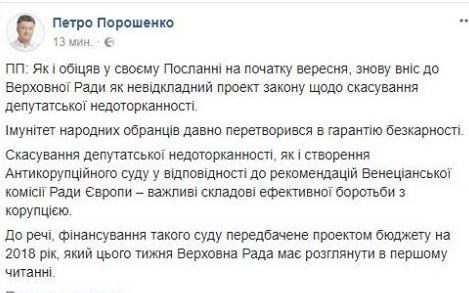 Как можно митинговать за антикоррупционный суд, деньги на который уже есть в бюджете? То есть он будет. Вопрос времени и формальности. Другой вопрос, что его хотят возглавить и контролировать люди, которые потеряли репутацию на антикоррупционной деятельности. Ну, а недоторканисть, это вечная тема. Ее не хотят голосовать, потому что тем кто окучивает лохторат не будет с чем выходить на выборы. Дело даже не в ответственности. Дело в том что это 100% работающая предвыборная обицянка.