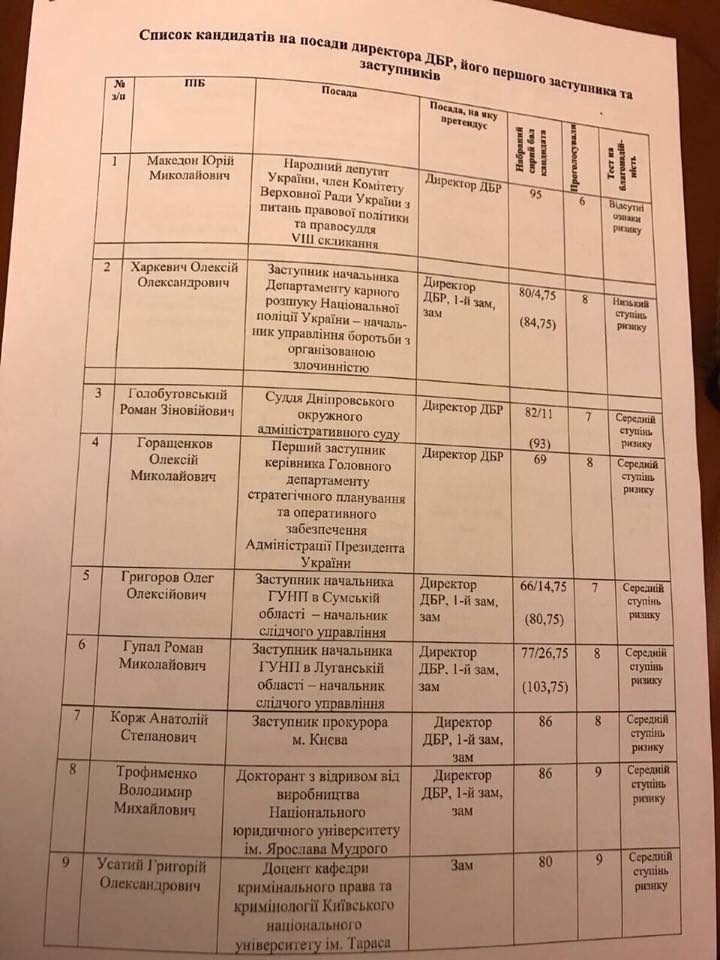 Отримав у розпорядження такий ось документ. Результат тестів по всіх кандидатах. І що ми бачимо. Перемогли ті, хто отримав... найгіршу характеристику. Навпроти призвищ Труба та Варченко висновок - «ненадійна особа (супер високий ризик)».