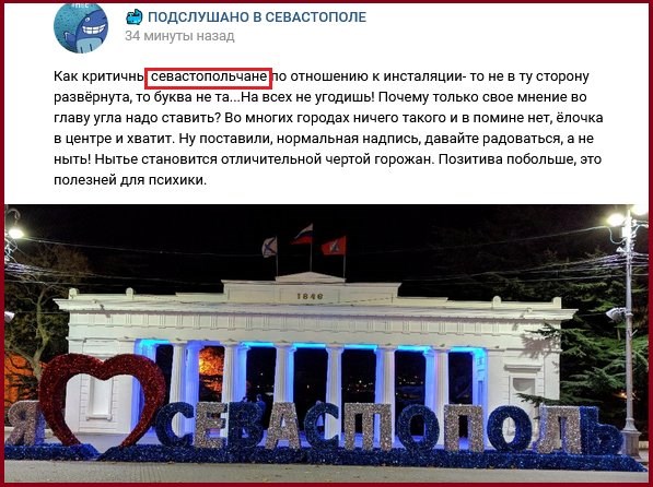 9. Севастопольской вате пришлась не по душе новая инсталляция “Я люблю Севастополь”, на которой оккупанты распилили полтора миллиона. Понаехавшие назвали севастопольцев “севастопольЧАНАМИ” и приказали радоваться. Если вы знаете менталитет местной ваты, то вы поймёте, насколько “чане” — удар ниже пояса и осквернение великих чувств.