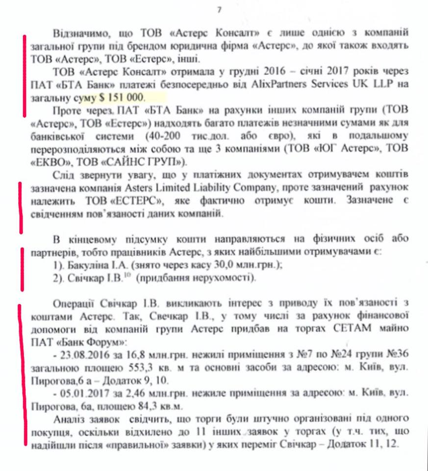 Например, некто Свичкар И. В. за счёт финансовой помощи от компании "Астерс" приобрёл у ФГВФЛ на торгах СЕТАМ имущество банка "Форум" примерно на 20 млн гривен.