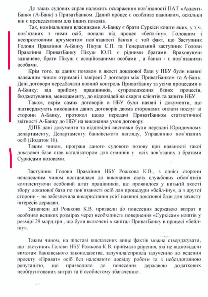 Нацбанк имел в своём распоряжении все доказательства связанности Суркисов и А-Банка с ПриватБанком и его акционерами - но по указанию Рожковой не передал их в суд.