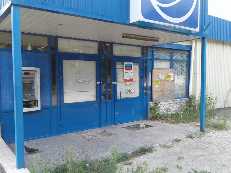 Бывший АТБ в г. Краснодон, ул. Бунина, 4-б. Там тоже украли все оборудование. Но зато на входной двери есть наклейка с флажком ЛНР!