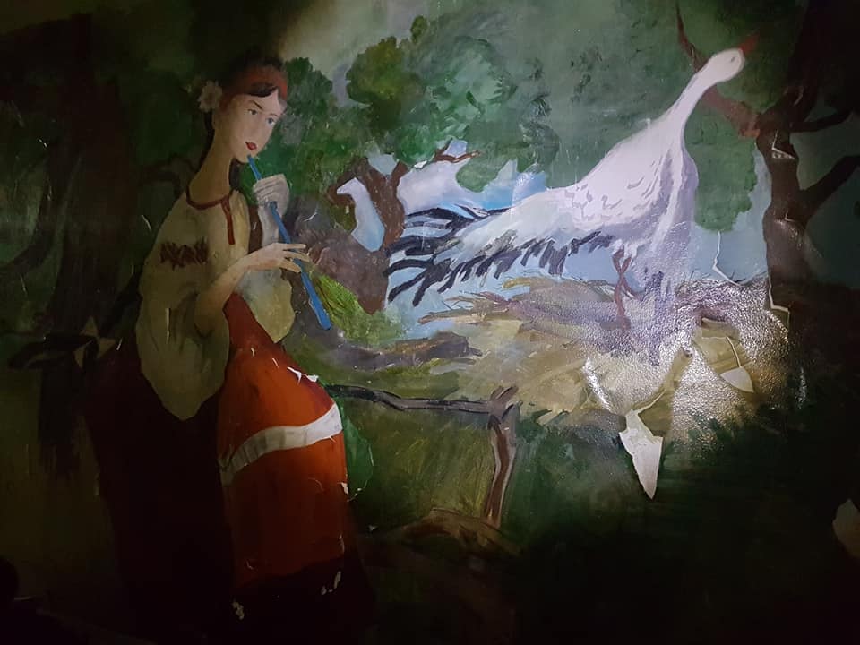 Она разрисовала этот коридор Дворца Культуры в 1987 году.