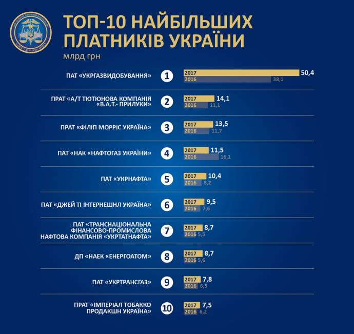 Десять найбільших платників податків України за 2017 рік. Дуже цікавий список.