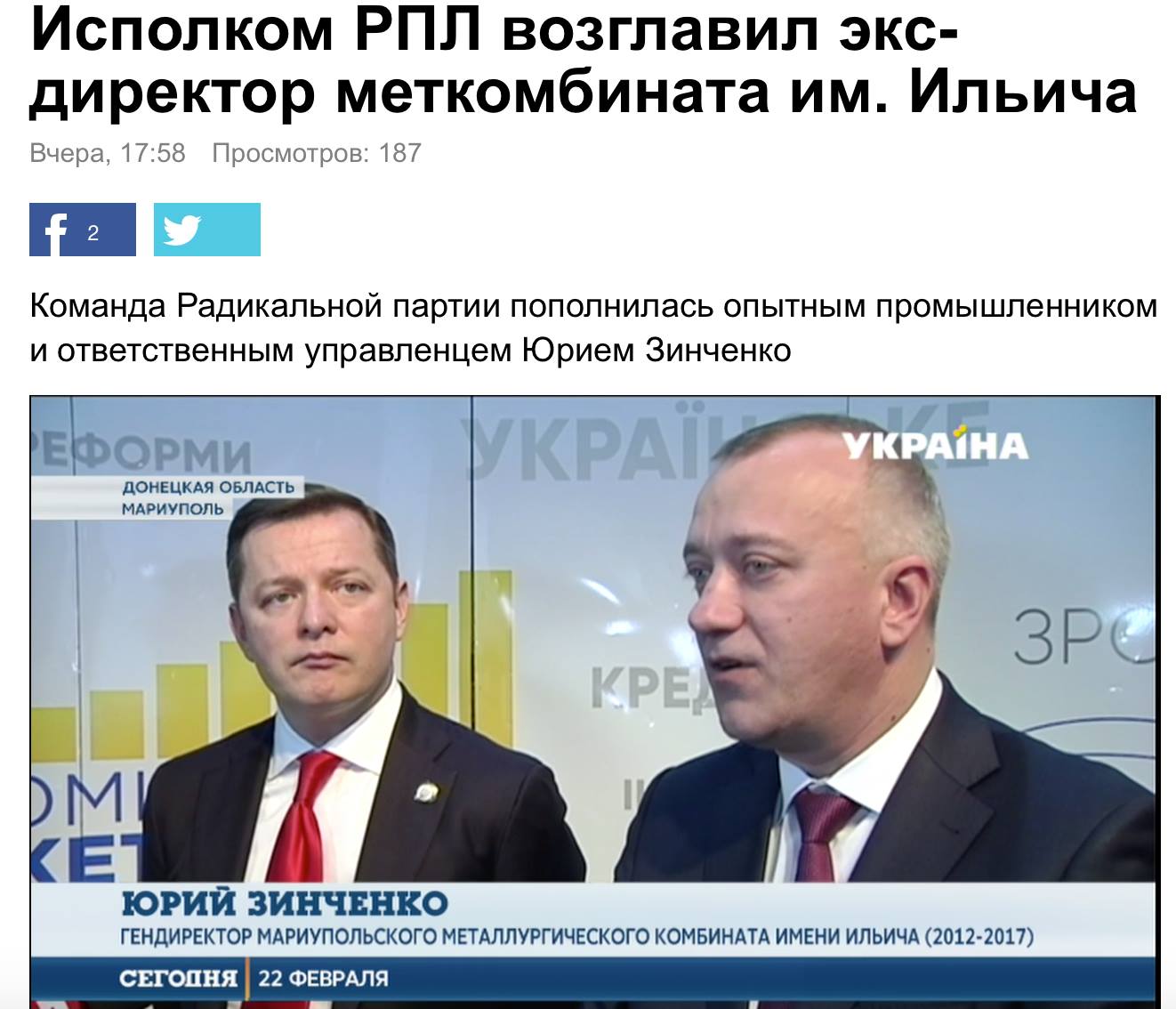 Исполком Радикальной партии возглавил ахметовский кадр, топ-менеджер "Метинвеста", бывший директор мариупольского меткомбината им. Ильича Юрий Зинченко.