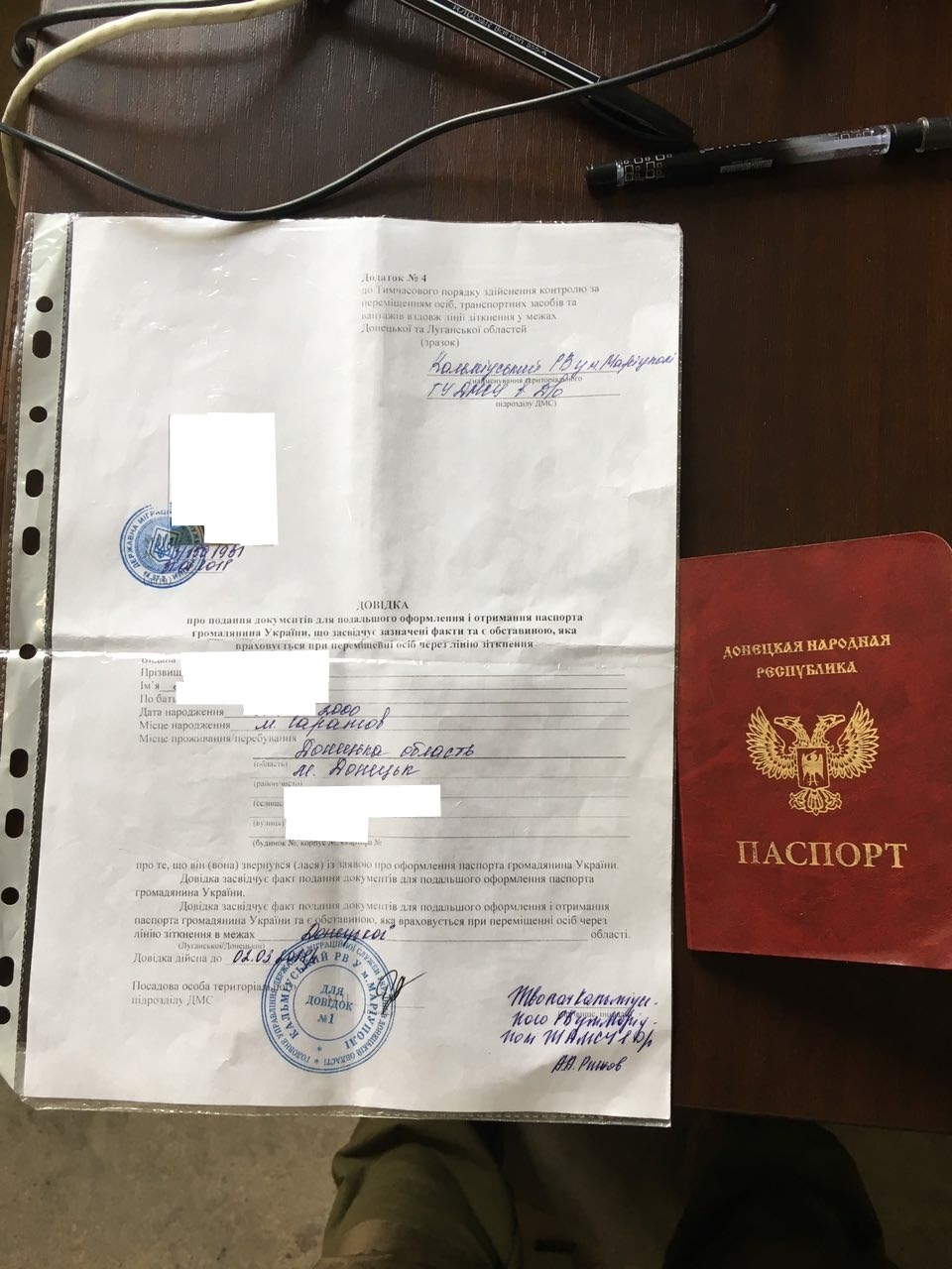 Согласно документу с прожимной печатью в форме Тризуба на фото, девушку можно было при желании как пропустить, так и не пропустить на территорию, не подконтрольную быдлоте дынырийской. Только погранцы действовали по закону: на основе именно документов с Тризубом, ее и пропустили с оккупированой территории на не оккупированую. Пачпарт дыныры тут ни при чем вообще, удостоверение дебила у девчонки забрали.