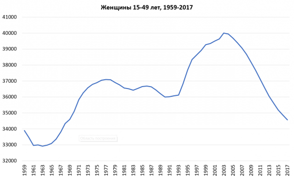 График 2. Число женщин детородного возраста (15-49 лет) в 1959-2017 гг., тыс.чел.