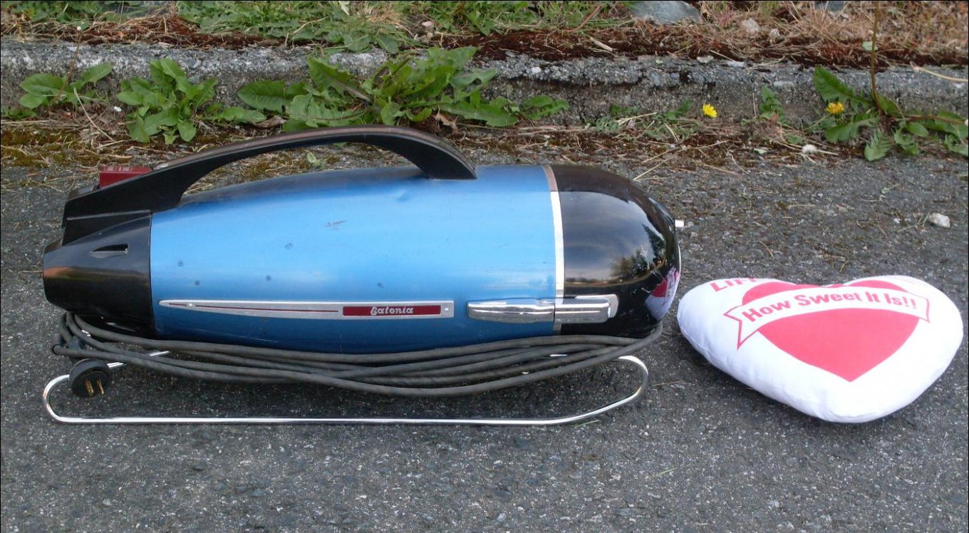 И всё бы ничего, да вот выпущенная в 1963 году "Чайка" практически полностью скопирована с выпущенного аж в 1942 (!) году пылесоса "Eatonia", что производился в Голандии для канадских универмагов T.Eaton, отсюда и такое название. "Чайку" передрали "в ноль", сохранив даже цвет, форму ручки, форму полозьев и дизайн хромированной накладки с логотипом: