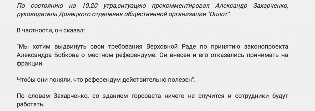 Когда уйдут Захарченко и кем он будет заменен — до конца не ясно. Все это решается кулуарно и тайно от людей, в России, поэтому мы можем только гадать. Прошли те времена, когда народ Донбасса спрашивали. Теперь люди в ДНР живут в положении полукрепостных. У них нет свободы передвижения (комендантский час), свободы выбора, свободы слова и прочих базовых для цивилизованного общества свобод. И в нужный момент, когда Москва определиться с новым гауляйтером, Донбасс просто поставят перед фактом.