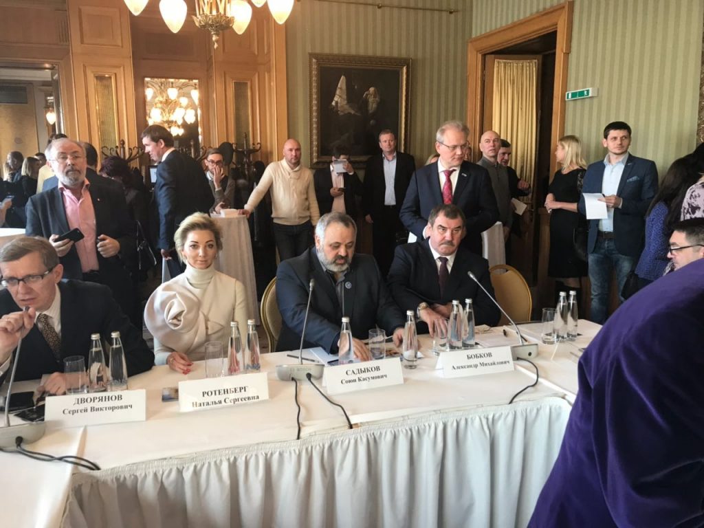 Вот фото с одной из конференций Бобкова и Садыкова. На ней присутствует Наталья Ротенберг — жена одного из приближенных к Путину олигархов.