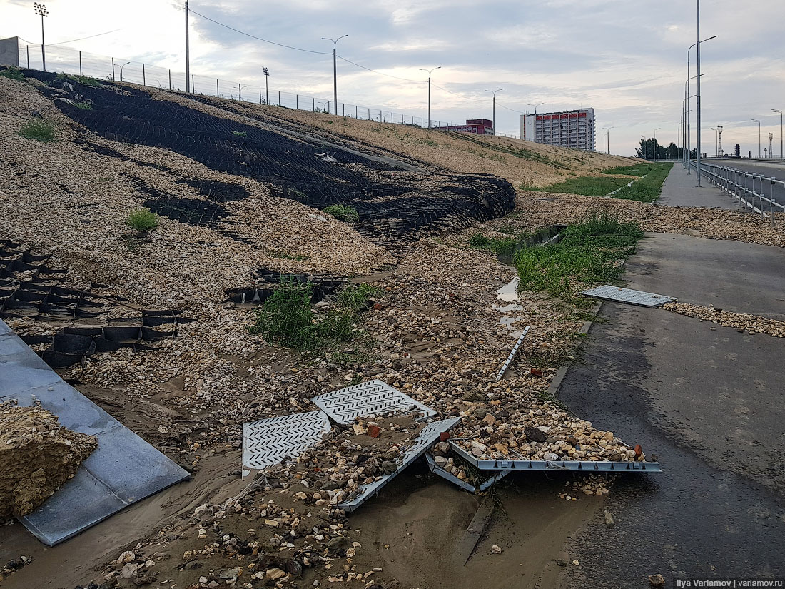Совсем недавно после первого дождя смыло благоустройство в Нижнем Новгороде. Я знал, что так будет. Просто законов физики никто не отменял. И если не продумать водоотвод, не укрепить склоны, то первый ливень все смоет.