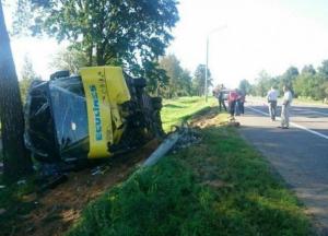 Водитель заснул, автобус врезался в столб, вылетел в кювет, перевернулся. Итог - никто серьезно не пострадал.
