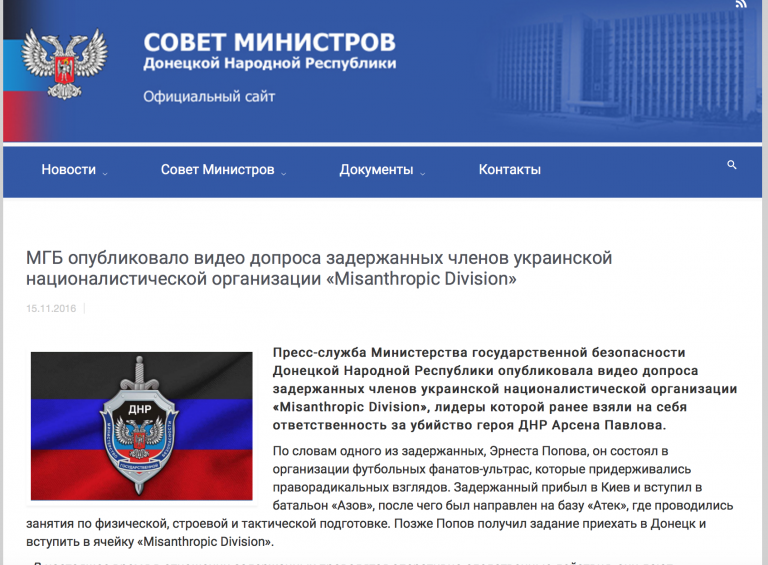 На официальном сайте совета министров ДНР тоже рассказали о задержании кровавого карателя.