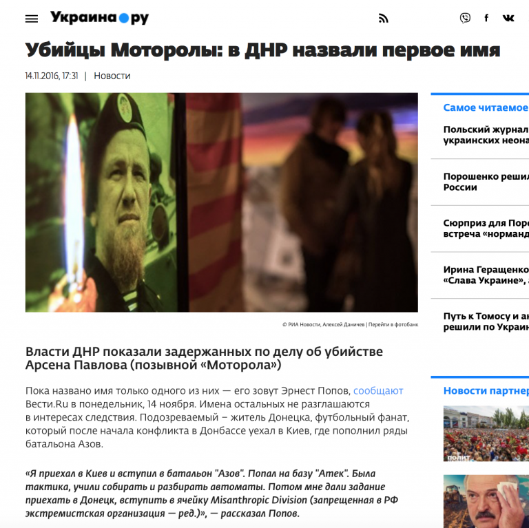 16 октября 2016 года в Донецке был убит один из самых известных российских наемников, воевавших на стороне "ДНР" — Арсен Павлов по кличке Моторолла.