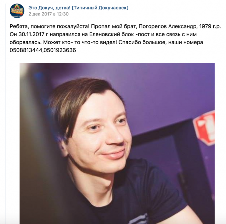 Правда, есть одна маленькая деталь. В гугле за 5 минут находится имя Александра Погорелова, которого боевики ДНР схватили на блокпосту в Еленовке еще в ноябре 2017 года. То есть, почти за год до убийства Захарченко. Тогда сестра Погорелова во всех соцсетях давала объявление о том, что он пропал в Еленовке и не выходит на связь. И вот теперь, спустя две недели после убийства Захарченко, бедолагу извлекли из подвала и заставили признаваться, что он страшный террорист, который закладывал взрывчатку. Видимо, руководил спецоперацией прямо из застенок. Так глубоко диверсанты еще не проникали.