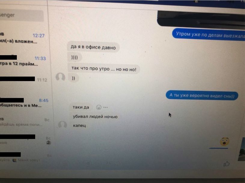 19. После моего воскрешения мне написала коллега и попросила об интервью. Об этой переписке знали ТОЛЬКО два человека - я и она. Эта переписка велась только в Мессенджер, больше нигде. На словах ничего не обсуждалось. Буквально через два часа этой коллеге написала все та же самая «Марина Клинкова»: «Здравствуйте, коллега. У нас есть информация, что Аркадий Бабченко согласился дать вам интервью. Вы можете это подтвердить?»