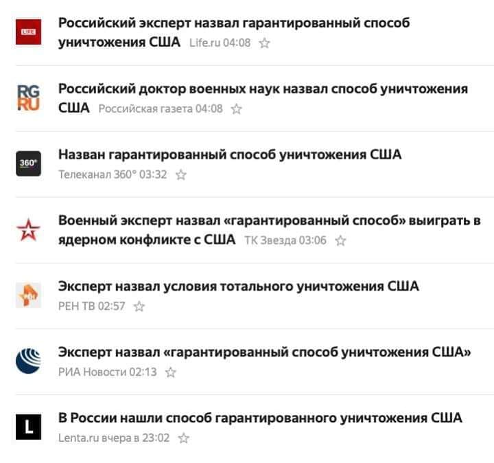 Ну, с научной точки зрения, сезонное обострение шизофрении у российских СМИ и экспертов объяснимо. Но я не подозревал что у них там все так плохо и массово... Видимо у них сейчас тот период, во время которого болезнь становится более активной и опасной, при этом снижается или даже полностью утрачивается критика человека к своему состоянию, что может привести к негативным последствиям как для самого человека, так и для окружающих. И как их лечить если у них этот психоз уже принял массовый характер. Воистину там заповедник безумия. А Киселев, Соловьев, Скабеева и другие работают в нем лесниками.