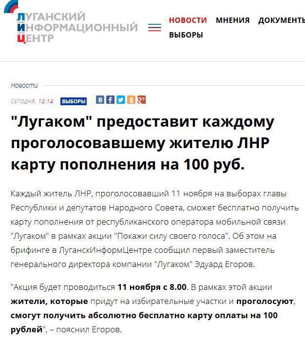 В ЛНР осознали наконец, что на фейковые выборы народ не затянуть даже силком, и решили прибегнуть к старому доброму подкупу, чтобы обеспечить явку.