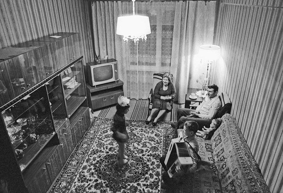 Вспоминаю семью моего друга Вовы, которая жила в тесной советской трёхкомнатной квартирке общей площадью не более 55-60 метров — там была крошечная прихожая два на два метра, небольшая спаленка и ещё две смежные комнаты площадью метров по 17 каждая. В этой квартирке жили 7 (семь!) человек — мой друг Вова, его отец и мать, его сестра Вика, его тётя Аня, а также бабушка с дедушкой. Все комнаты квартиры были заставлены кроватями, а письменный стол Вова делил со своей тетей — которая в то время училась в институте. В гости к Вове я ходил только днём — когда дома кроме него бывала только мама, иначе в квартире было не развернуться. За общим столом на кухне семья Вовы не собиралась никогда — было очень тесно.