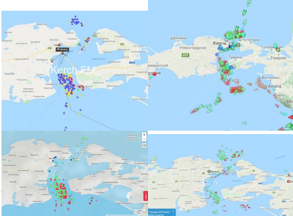 Пробки судов на вход в Керченский пролив и на выход из него.