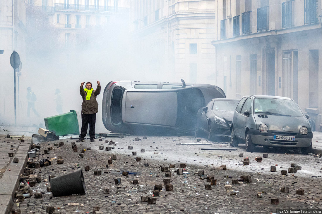 Хм... На этом месте русский человек уже перестаёт понимать, что происходит. Ещё вчера нас пугали: "Хотите, чтобы было как на Украине?" – и мы дружно отвечали: "Не дай бог!" Потом нас пугали прыгающим по площадям Саакашвили, и мы дружно зажмуривали глаза от отвращения! А теперь нас спрашивают, хотим ли мы как в Париже? Ещё несколько недель назад Первый канал рассказывал, что марионетка Трампа, враг России Макрон довёл трудовой народ Франции, и вообще у них всё трещит по швам. Ещё вчера мы радовались за трудовой народ, который вышел против узурпатора. Но сегодня капитан опять меняет курс, и трудовой народ превращается в бунтарей. И нас опять спрашивают, хотят ли русские в Париж.