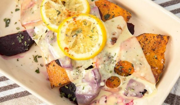 "Кажется, что свекла и тыква – это простенько. Но в этом рецепте они сведут вас с ума! Овощи, запеченные в духовке, становятся более насыщенными и нежными, а голландский сыр добавляет слащавости и приятно тянется, а лимон и мята делают вкус блюда сбалансированным", – Евгений Клопотенко.