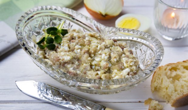 "Форшмак – это закуска, которую часто готовят для праздничного стола. Кто-то делает его с яблоком, кто-то добавляет хлеб, а кто-то делает его просто с яйцом и луком. Я предлагаю совершенно необычное сочетание, которое вы еще точно не пробовали. Форшмак с сыром очень нежный и обязательно понравится всем поклонникам этого блюда", – Евгений Клопотенко.