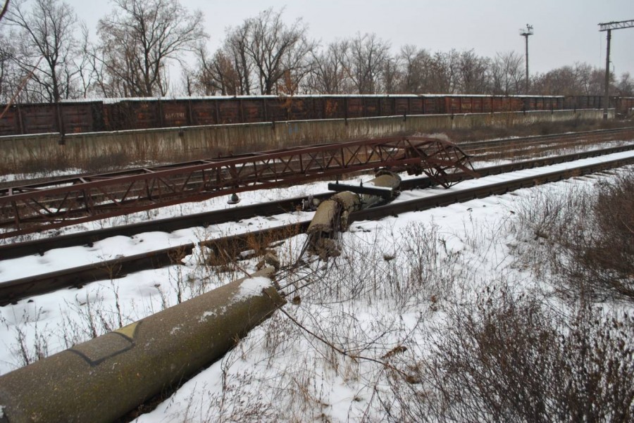 На рельсах до сих пор валяются поваленные столбы и перебитые провода. Видимо, по этим путям никто так и не ездил.