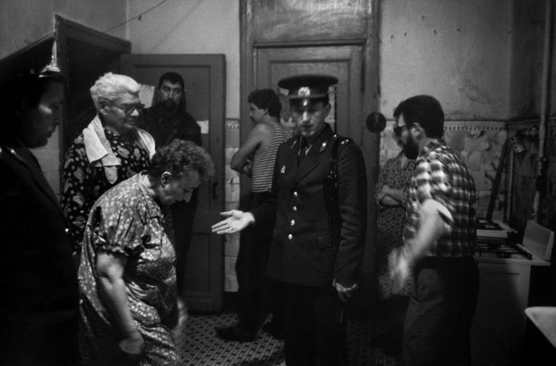 16. А это — разбор какого-то конфликта на советской коммунальной кухне — на той самой, где люди жили "дружно зато бедно" и клали ключи друг другу под коврик. Если в разбор конфликта подключили милицию — то скорее всего произошло что-то серьёзное — поножовщина либо крупная кража. А ещё обратите внимание на внешний вид "счастливых советских граждан" — женщины в СССР уже к 60 годам превращались в бесформенное нечто.