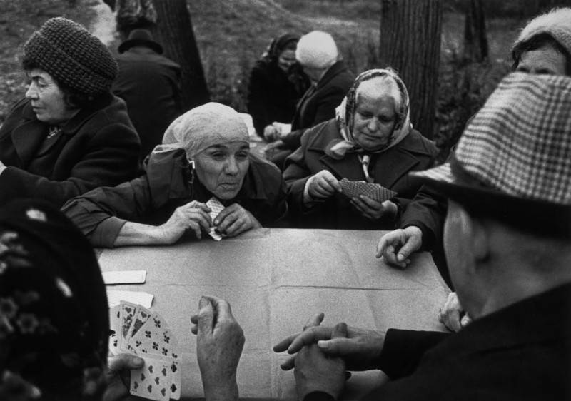 9. Доминошная лавочка в одном из дворов, которую на этот раз оккупировали картёжники. Как там пелось в известной песне — "молодым везде у нас дорога, старикам везде у нас почёт". "Почёт" заключался в возможности кое-как существовать на мизерную пенсию, а из развлечений у стариков были, в основном, посиделки на лавочках у подъезда, алкоголь да вот такие игры.