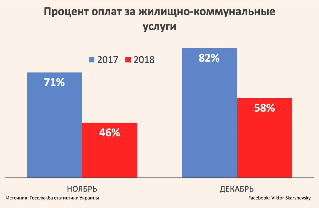 Всего, за 2018 года задолженность населения за жилищно-коммунальные услуги увеличилась на 23,3 млрд грн или в 1,7 раза.