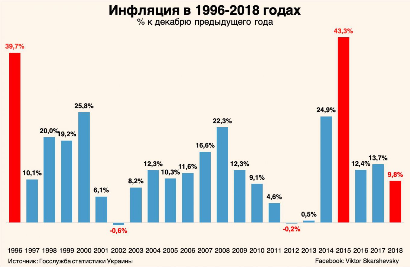 При этом забыли напомнить, что в 2015 году инфляция была самой высокой (43,3%) за последние 20 лет, т.е. с 1996 года (39,7%). При этой власти цены в 2015 году выросли на рекордную величину с момента введения гривны в 1996 году.