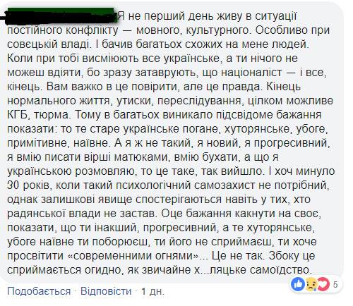 Ну і про Зеленського ж. Я тут була дещо "рісьорчила" в мережі на зовсім іншу тему - і, наткнувшись на ось цей комент "свідка доби", вирішила поділитися. По-моєму, цей спогад (а в нас таке згадують рідко, і в підручниках про таке не пишуть!) багато що пояснює в феномені того "колективного самогубства", до якого готуються українці, котрі щиро (!) збираються голосувати за куклу з комічного шоу від московських кураторів. Пояснює, звідки в наших людей така клінічна відсутність імунітету на колоніальний "тролінґ".