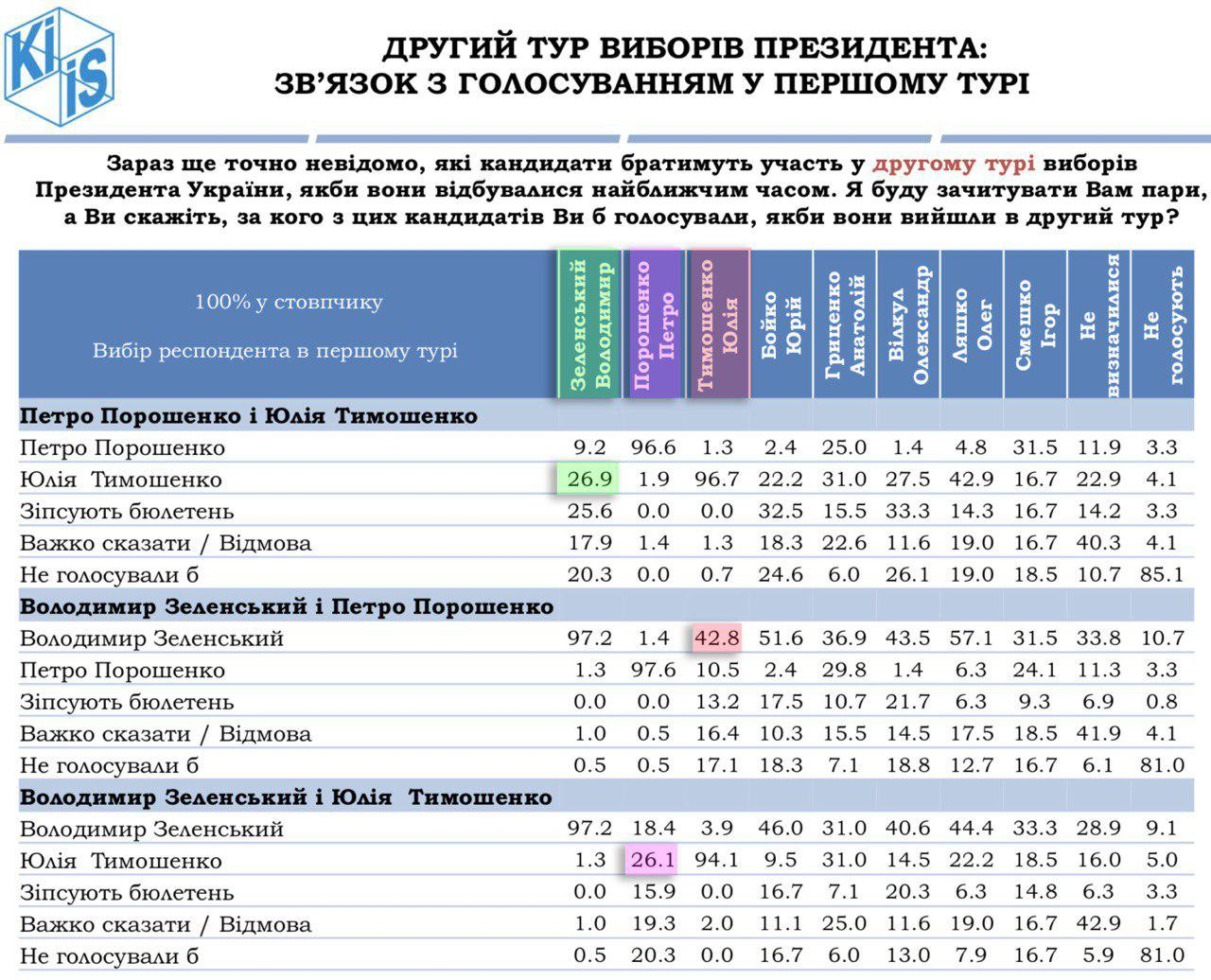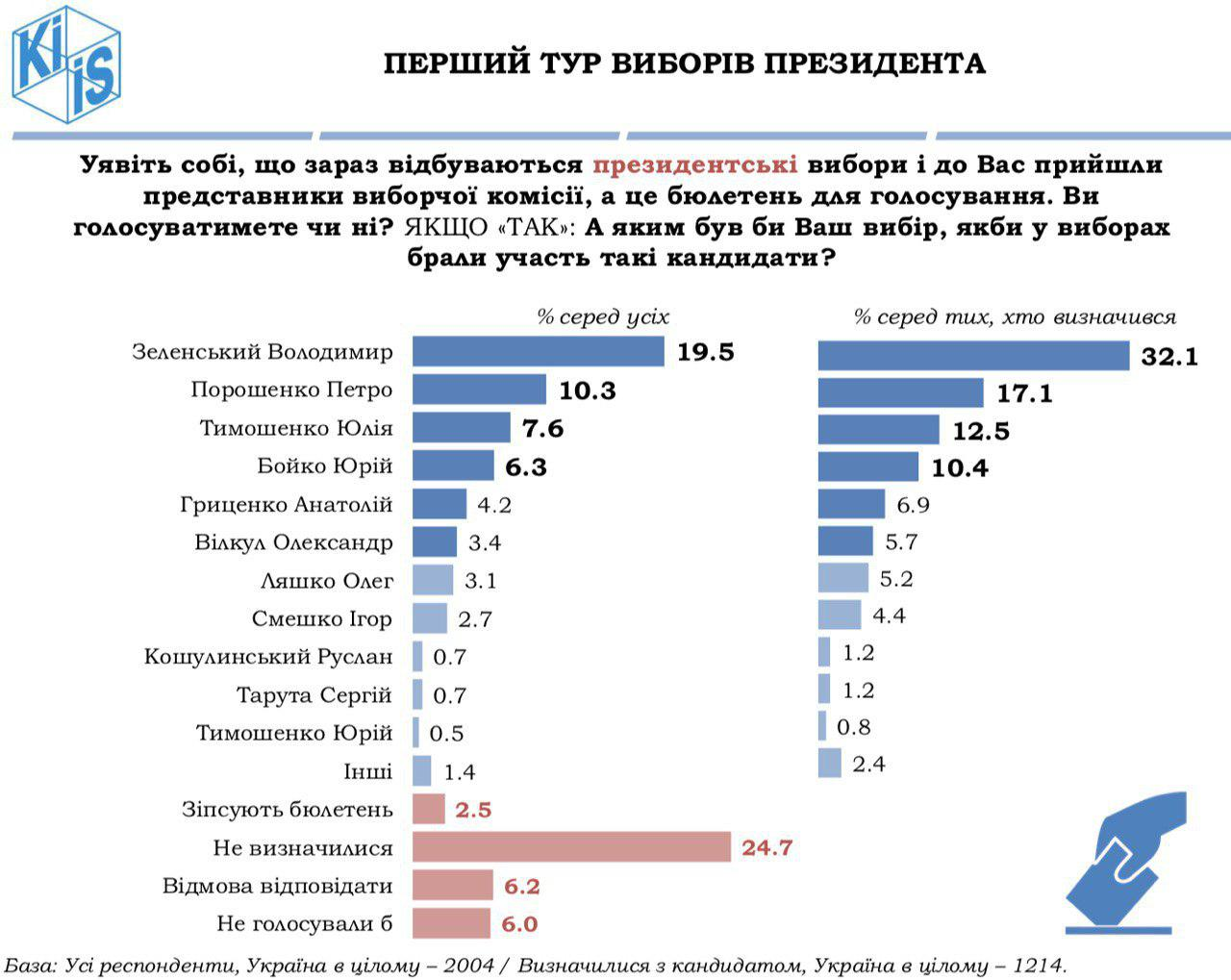 Пришли результаты нового соцопроса КМИС. Судя по всему, это последнее исследование института перед выборами.