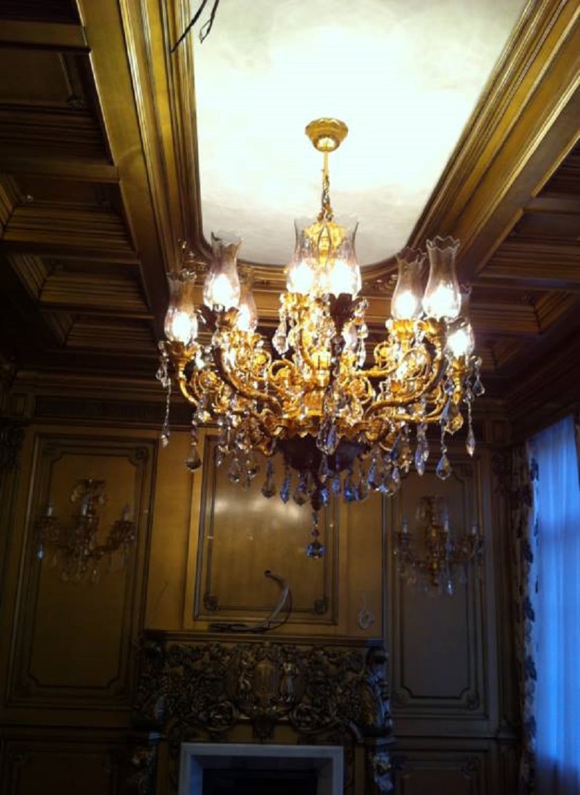 Эта люстра находится в кабинете Порошенко и имитирует старинную люстру с горящими свечами средневековья и выполнена в классическом стиле. Вероятнее всего, элюстра от итальянских производителей «MOSCATELLI», «Faustig», либо «KOLARZ», которые он указал в декларации. Такая люстра может стоить от 500 тысяч гривен.