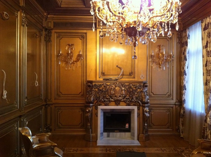 Жлоб-стиль дополняют деревянные кресла, находящиеся возле камина. Кресла позолочены, и это в очередной раз напоминает о амбициях Петра Алексеевича, который везде хочет ощущать себя «королем». Точно такая же «болезнь» присутствовала у Виктора Януковича.