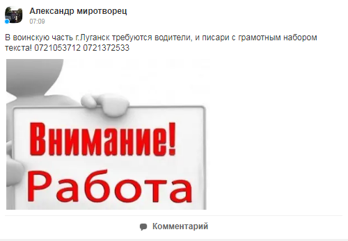 Кризис в системе образования ОРДЛО, да и потребность в грамотных людях в ОРДЛО настолько велика, что уже даже "армия", военкоматы, то есть незаконные коллаборантско-оккупационные военные формирования, предъявляют требования к соискателям работы – умение писать грамотно.