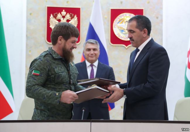 Кадыров не стесняется утверждать, что все делается в связи с поручением Путина. Правда, в спорах между осетинами и ингушами нет исторической причины – Пригородный района всегда принадлежал ингушам и входил в состав тогда Чечено-Ингушской АССР, а Ауховский район по крайней мере со времен Кавказской войны 19 века был частью Хасавюртовского округа, а потом Ауховского района Дагестана. В этом случае этнические чеченцы-аккинцы, живущие в Дагестане, просто захотели стать жителями Чечни.