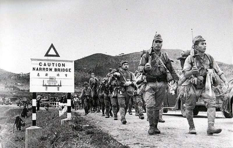 7 июля 1937 года - боевые действия начались в Китае. Стычка между солдатами японской Гарнизонной армии в Китае и ротой китайских войск армии правительства Чан Кайши , охранявших мост Лугоу , послужила для японцев формальным поводом для начала Второй японо-китайской войны. Некоторые историки именно эту войну считают началом Второй мировой войны.