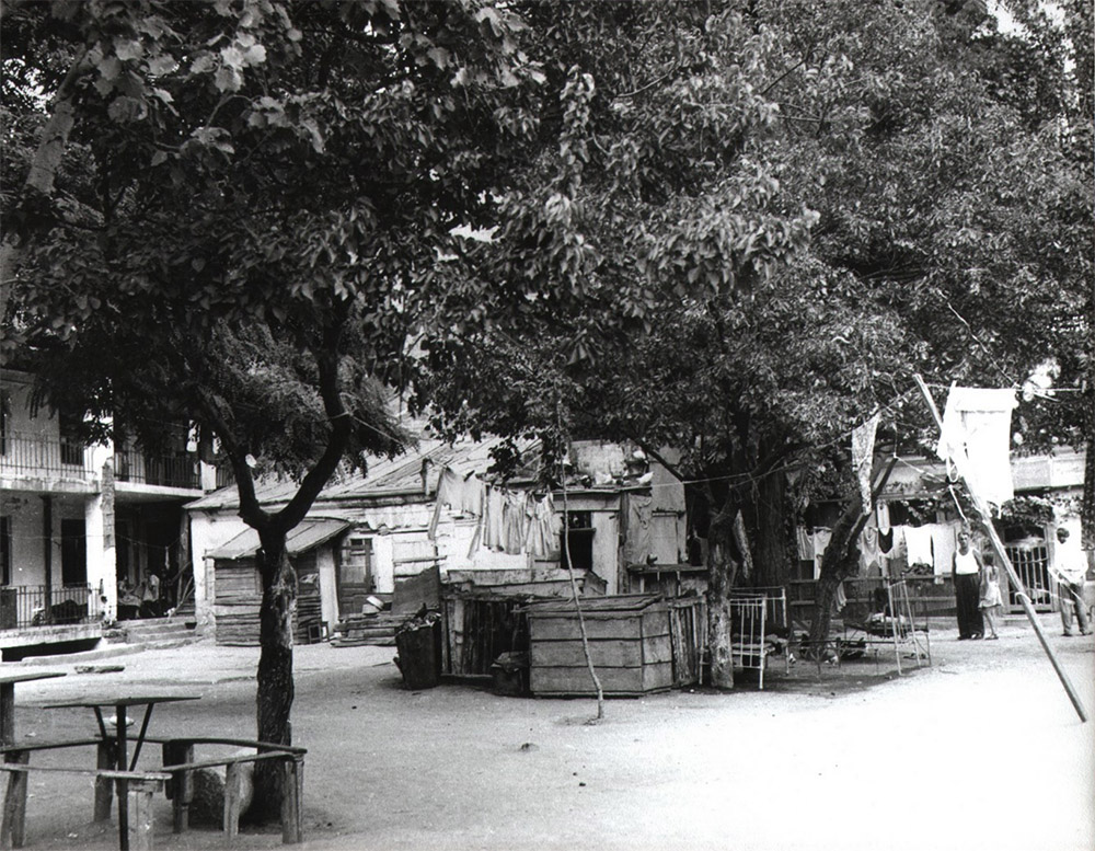 Двуколка в одном из дворов — снимок словно из XIX века. Напоминаю вам, что это 1963 год, и осёл, запряжённый в двуколку, вполне может дожить до обещанного в 1980-м году коммунизма. Видимо, тогда двуколка станет золотой, а кормить запряжённого в неё осла будут исключительно бесплатной морковкой.