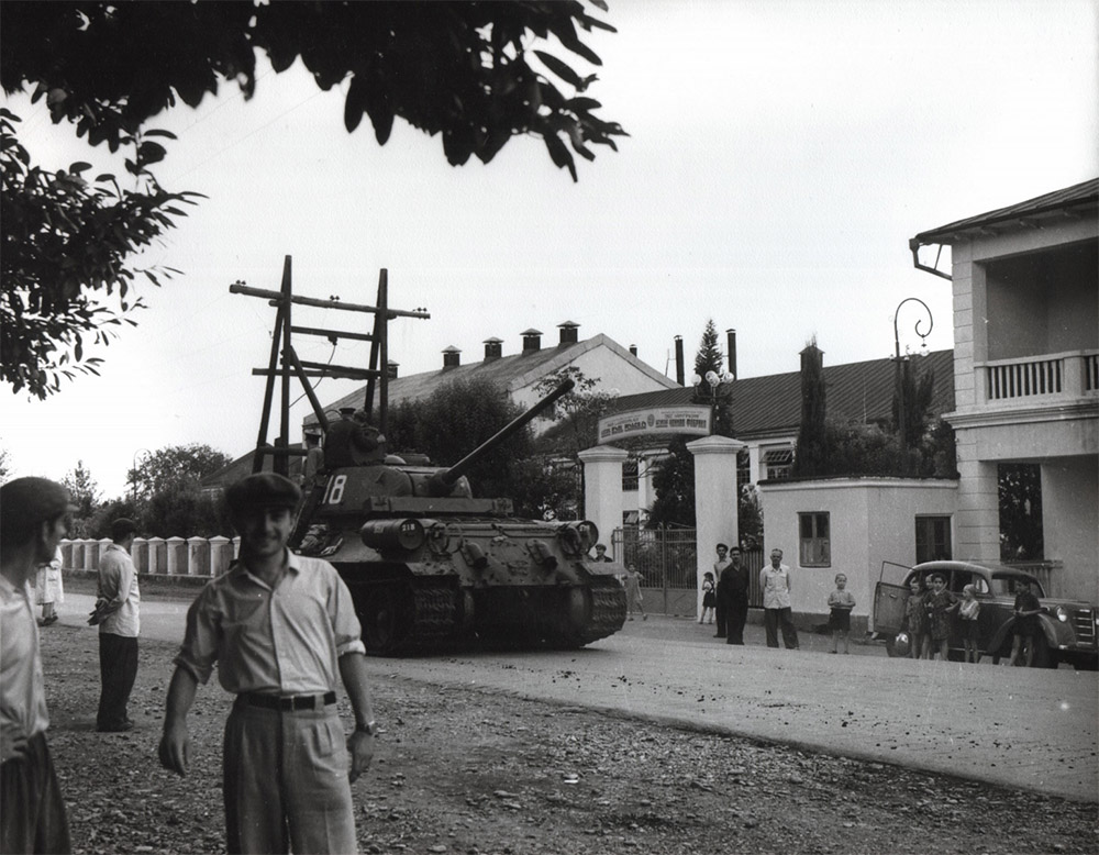 Танк Т-34-85. Что делал старый советский танк с боевым расчетом внутри на улицах Одессы 1963 года — я вам сказать не могу, не знаю.