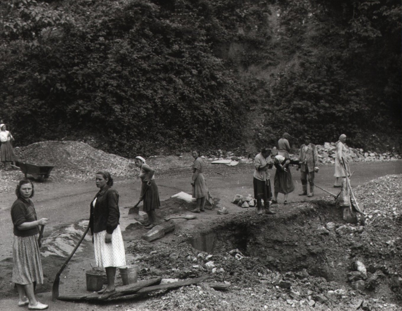 Хотя на самом деле намного страшнее вот этот снимок — он называется "ремонт дороги". На нём обычные советские женщины надрываются на тяжелых дорожных работах, никакой техники не видно — видимо, она вся улетела покорять космос, все приходится делать совковыми лопатами и тачками. Эй, капитан, расскажи-ка нам про "очернение советской дейстительности"! Капитан! Капи... А, стоп, его нет — он уплыл в свои круизы вокруг Европы.