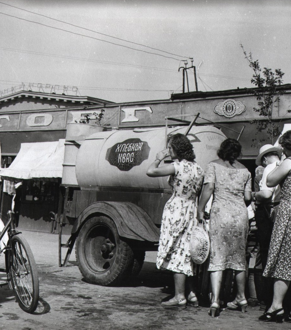 Бочка с квасом, год тот же. На дне таких бочек обычно водилось черти-что, но тогдашние сантитарные нормы закрывали на это глаза.