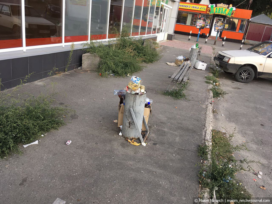 И это тоже центр Луганска во время очередного "торжества". Ура, мы пабидили биндер и теперь можем мусорить! Смех-смехом — но на самом деле люди деградируют очень быстро, причём часто даже сами не замечая этого.