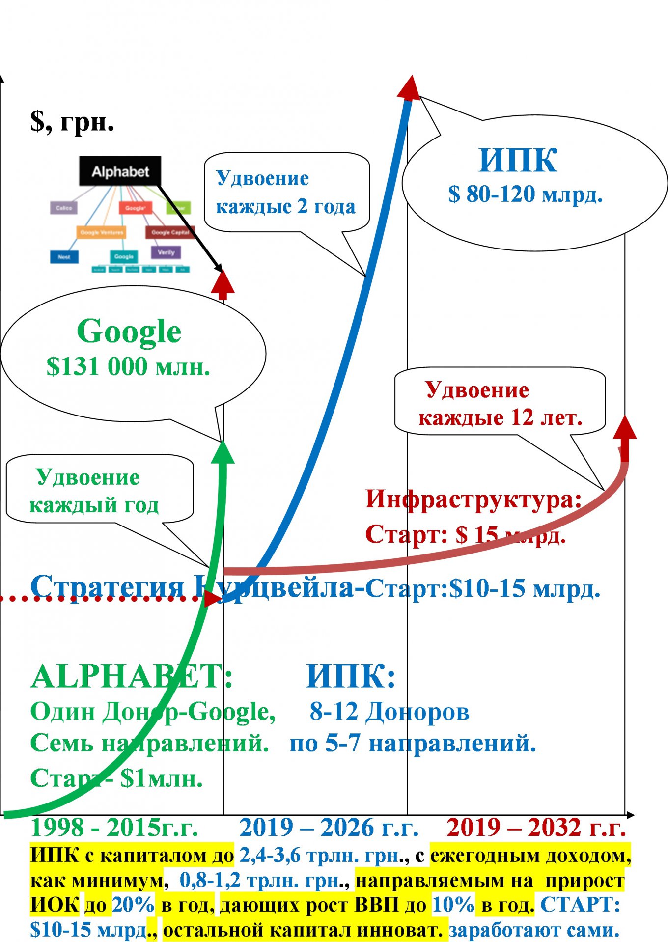 График роста капитала Alphabet (Google) показан на рис.2 (зелёная линия). Холдинг Alphabet -самый лучший образец того, как надо осуществлять инновационный и экономический прорыв.