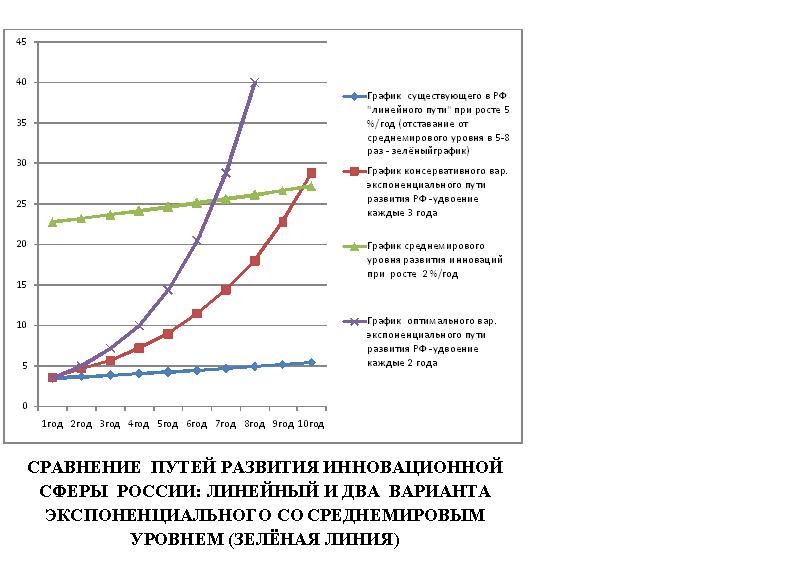 Известно, что нет ничего практичнее хорошей теории. Экономическое развитие обычно характеризуется скоростью роста ВВП и его ускорением. Рост ВВП на несколько % в год свидетельствует практически об отсутствии ускорения. Экономическое развитие такого типа называют линейным(см. рис.1).