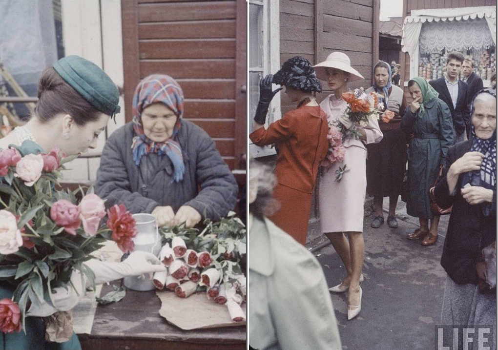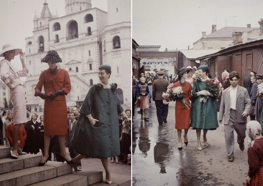 В общем, в 1959 году Хрущёв разрешил привезти из "Загнивающего Запада" модные модели (одежду), которые были надеты на модных моделей (девушек). В серую советскую Москву прилетели французские модели от Christian Dior, чью прогулку по улицам города запечатлели фотокорреспонденты Life.