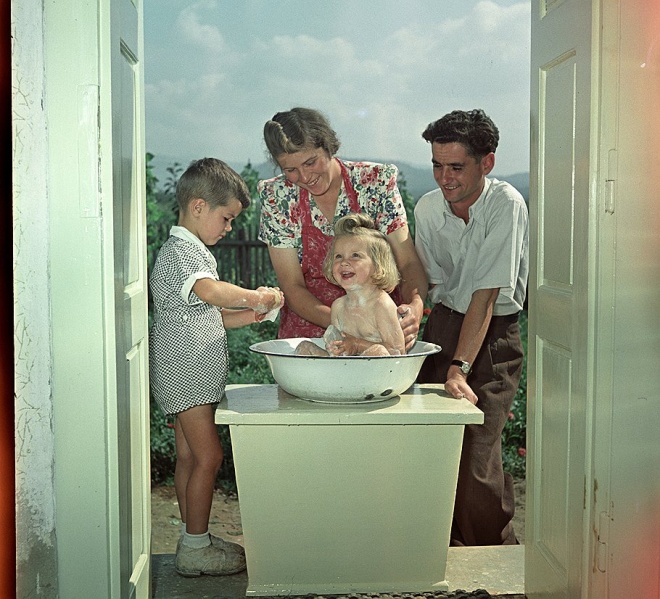 Фото "обычной советской жизни" в сельской местности. Идеально чистый дом с паркетным (!) полом, все ходят в накрахмаленных белых рубашках, ну и конечно постоянно улыбаются — как без этого жить)