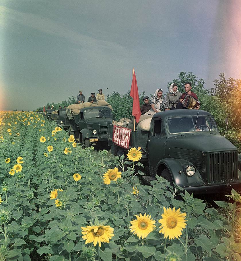 Квинтэссенция трудового счастья — ехать по солнечному полю на комбайне, с вымпелами в руках: