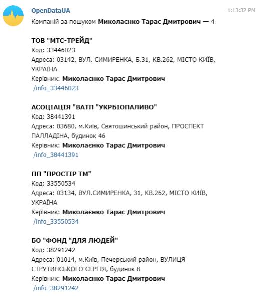 На перукаря Тараса Дмитровича Миколаєнка зареєстрований не лише сайт Тетяни Чорновол, а й ще близько 10 компаній, стосовно яких є виконавчі та кримінальні провадження щодо розкрадання бюджетних коштів, несплати податків, підробки актів виконаних робіт та договорів на будівництво клубу Центр мистецтв та дозвілля «Просвіта» в с. Сокільники, Пустомитівського району Львівської області.